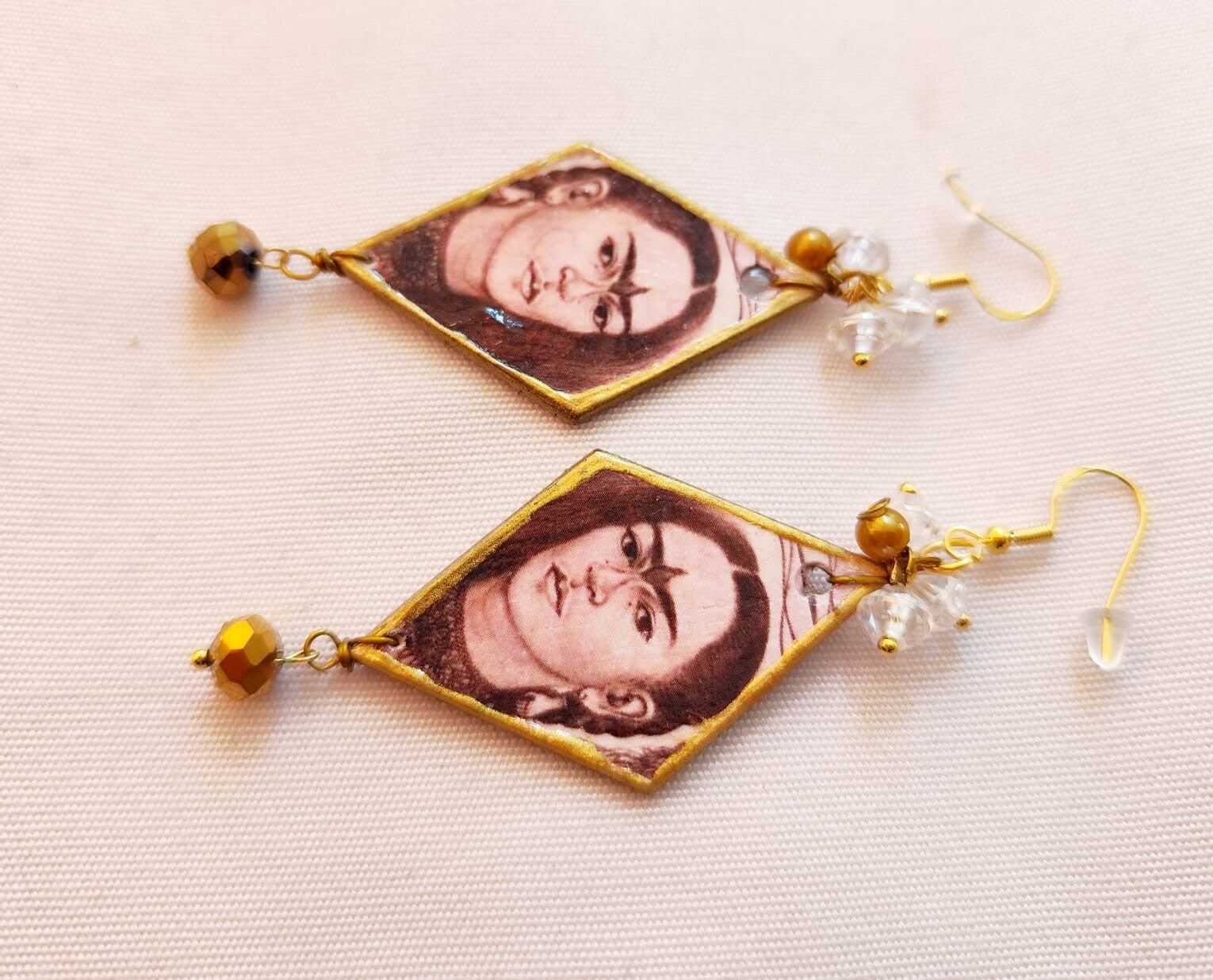 Beautiful handmade wood earrings with Frida Kahlo's face.