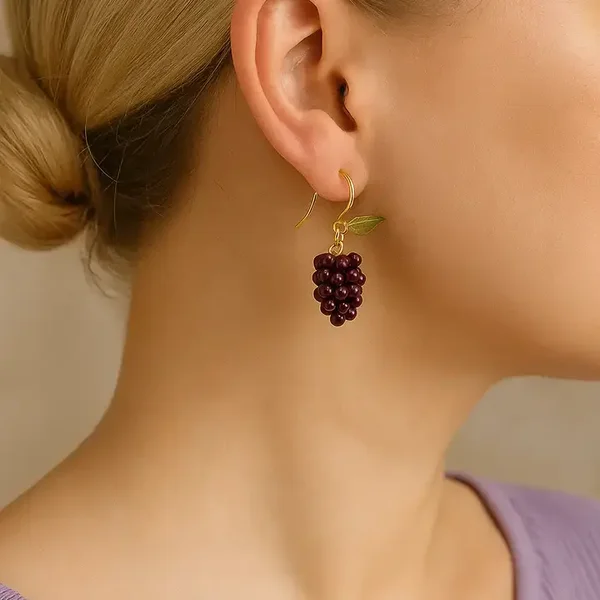 If you're looking for a unique gift that will make someone smile, these grape dangle earrings with leaves are sure to do the trick.